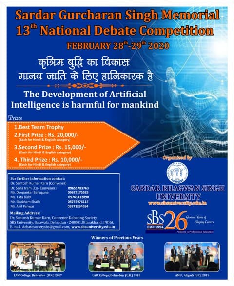 Sardar gurcharan singh memorial 13th national debate competition on February 28th-29th, 2020