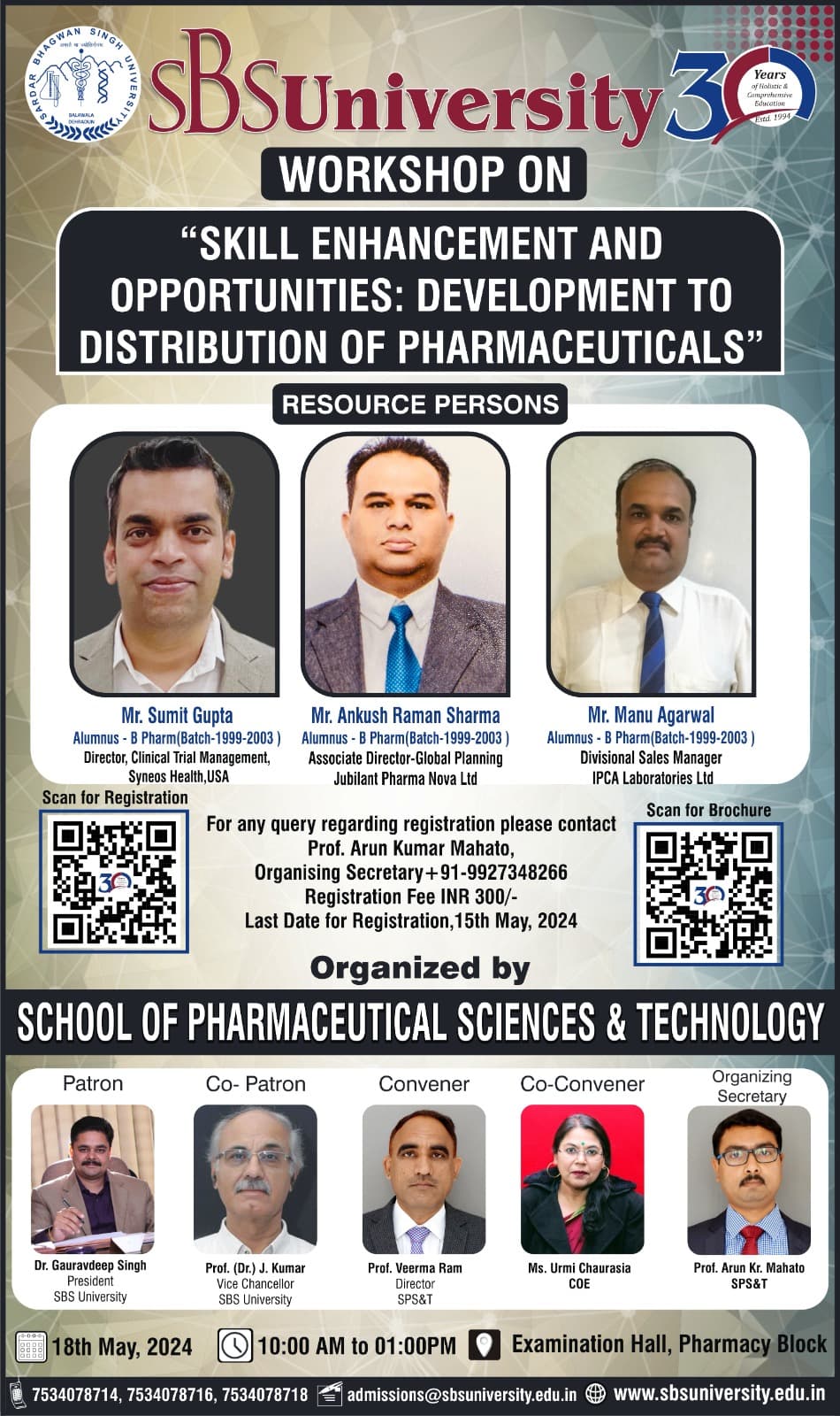 School of Pharmaceutical Sciences and Technology is organising Workshop on Theme: Skill Enhancement and Opportunities: Development to Distribution of Pharmaceuticals on 18 May 2024. Experts from Academia and industry will deliver their lecture.